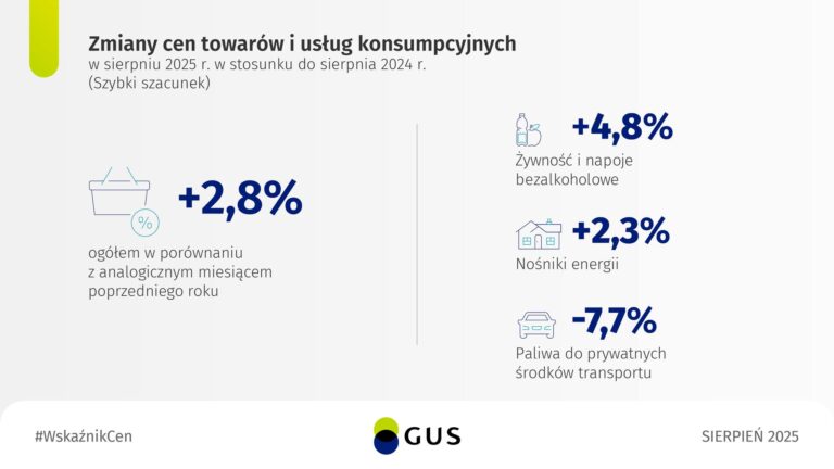 Najnowsze dane GUS pokazują, że inflacja w Polsce w sierpniu 2025 roku wyniosła 2,8% rok do roku, czyli mniej niż przewidywały wcześniejsze prognozy (2,9%). To dobry sygnał dla gospodarki i portfeli Polaków, bo oznacza, że ceny rosną wolniej niż oczekiwano.