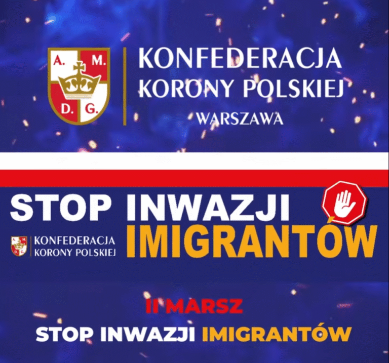 W niedzielę w Warszawie odbył się marsz przeciwko imigracji, zorganizowany przez Koronę Konfederacji Polskiej. Demonstranci przeszli trasą od placu Trzech Krzyży do Pałacu Prezydenckiego, niosąc biało-czerwone flagi i transparenty z hasłami antyimigracyjnymi, takimi jak „Stop inwazji migrantów” czy „Polak w Polsce gospodarzem”.