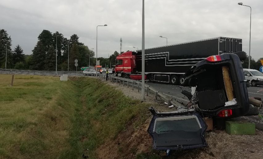 – Po zderzeniu osobówek opel wpadł pod jadącą za skodą ciężarówkę i przewrócił się na bok – dodała.