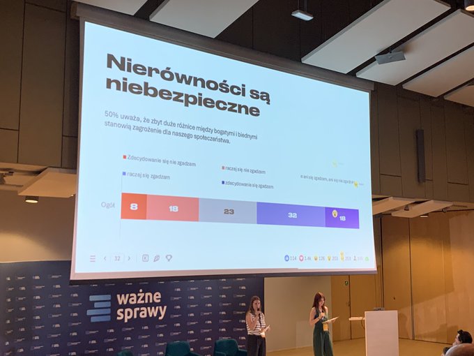 Dokładnie połowa młodych respondentów uznała, że zbyt duży dystans między zamożnymi a biednymi stanowi realne niebezpieczeństwo dla polskiego społeczeństwa. Warto podkreślić, że odsetek ten jest wyższy wśród kobiet (53 %) niż mężczyzn (48 %), a zaalarmowanie płynie z różnych poglądów politycznych – od lewicy po Konfederację. Taki wynik pokazuje, że kwestia nierówności nie dzieli młodych według linii ideologicznych, lecz raczej scala ich w poczuciu odpowiedzialności i zagrożenia.