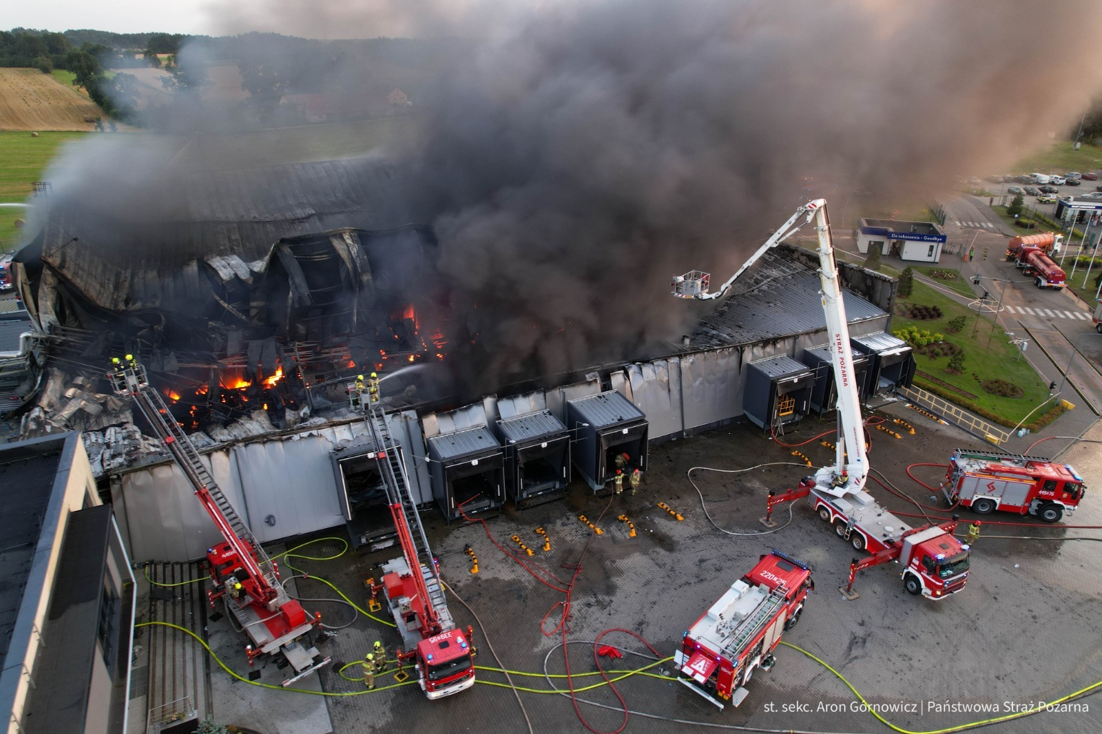 W środę po południu w miejscowości Kawle na Pomorzu wybuchł potężny pożar w zakładzie przetwórstwa drobiu. Ogień pojawił się w akumulatorowni na poddaszu hali i błyskawicznie rozprzestrzenił się na kolejne części budynku.