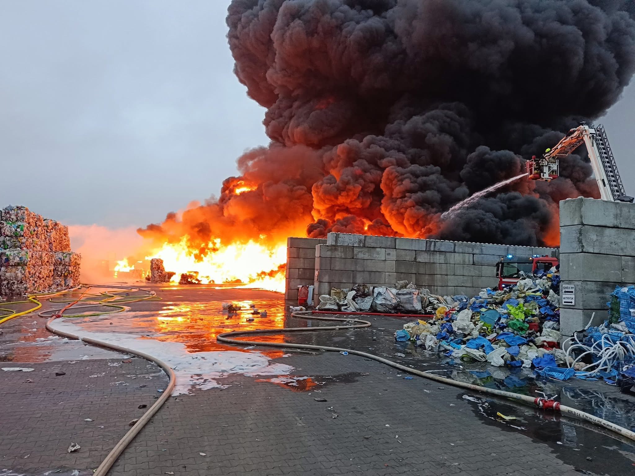 Ogień pojawił się tuż po godzinie 4:00. Płonęły głównie tworzywa sztuczne – głównie plastikowe butelki i inne odpady pochodzące z recyklingu. Płomienie błyskawicznie rozprzestrzeniły się po składowisku, obejmując powierzchnię około 1000 metrów kwadratowych. Cały teren zakładu to około 2000 m², więc zagrożenie było poważne.