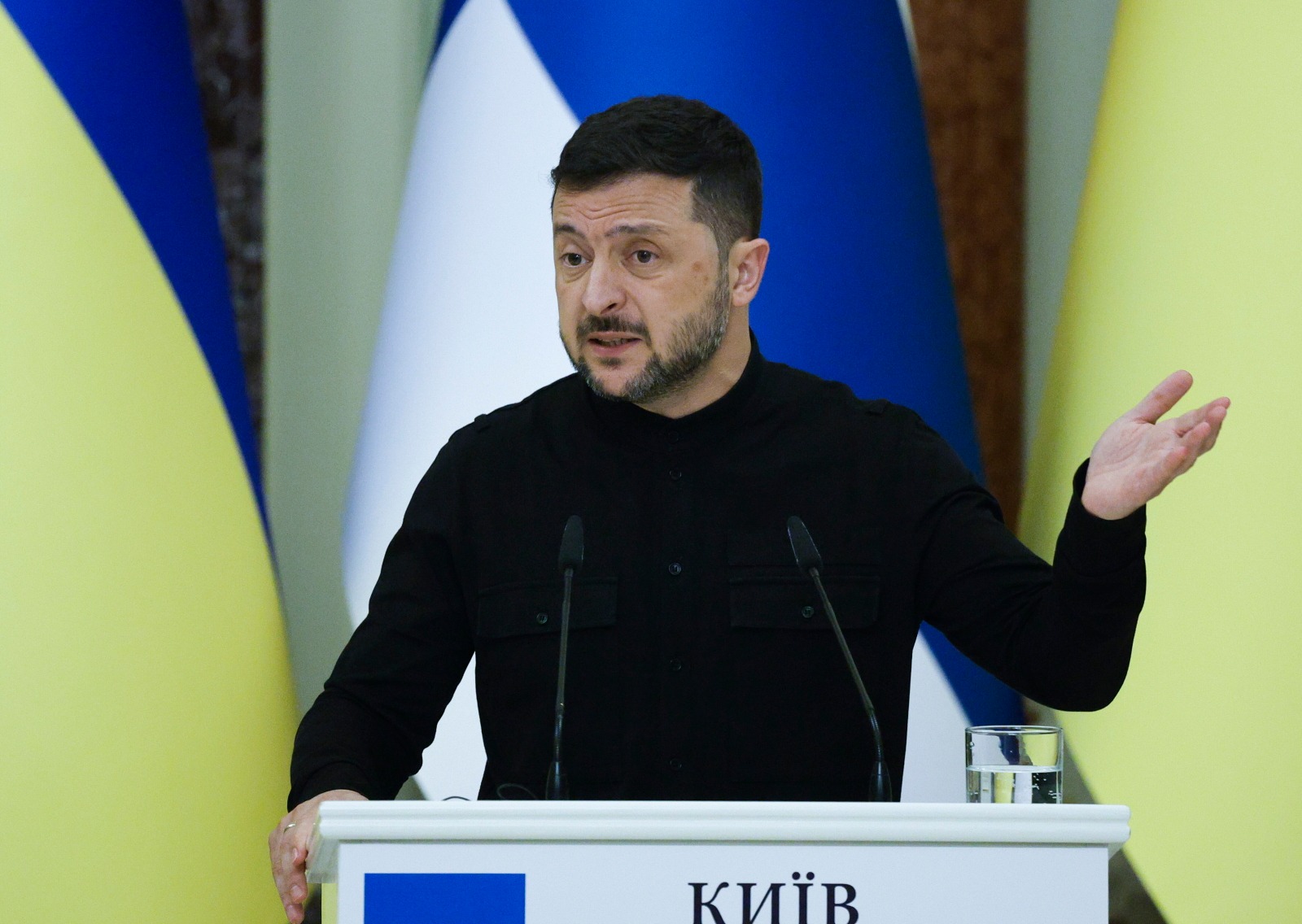 epa12369511 Ukrainian President Volodymyr Zelensky addresses a joint press conference with Finland's President Alexander Stubb (not pictured) following their meeting in Kyiv, Ukraine, 11 September 2025. Stubb arrived in Kyiv to meet with top Ukrainian officials. EPA/SERGEY DOLZHENKO Dostawca: PAP/EPA.